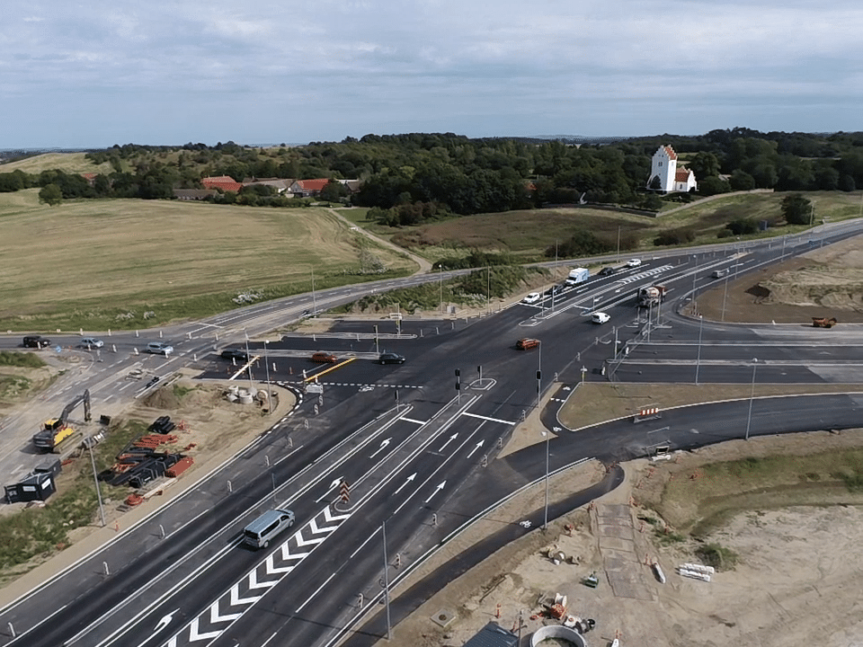 Ombygning af rundkørsel. Rundkørslen ved Tømmerup bliver omdannet til et 4-benet kryds for at forbedre infrastrukturen til den nye motorvejssammenslutning. Det nye 4-benede signalregulerende kryds